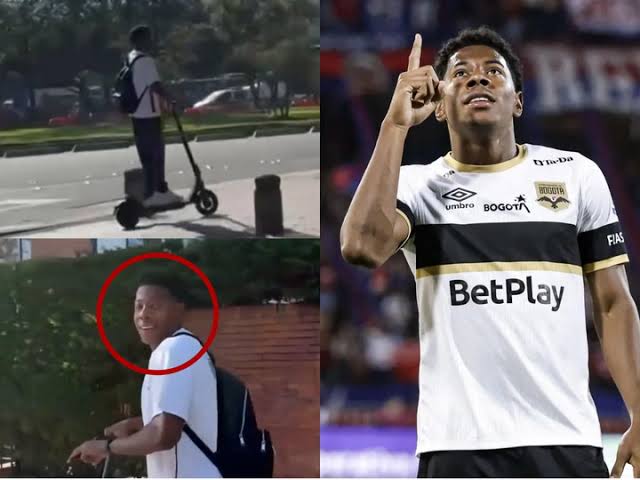 Con solo 18 años de edad, el delantero se ha vuelto viral luego de que circulara un video en el que se le ve transitando por las calles de la capital colombiana montado en una patineta, dirigiéndose hacia las instalaciones de su club, el Internacional de Bogotá.