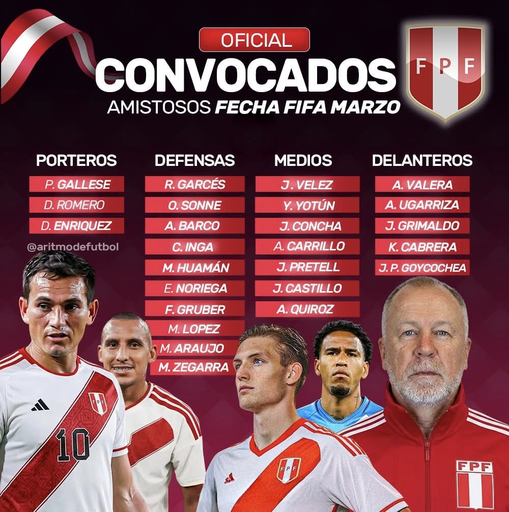 - Apuesta en el mediocampo: Jairo Vélez (Alianza Lima) y Erick Noriega (Gremio) son las principales novedades para fortalecer la construcción y contención del equipo.